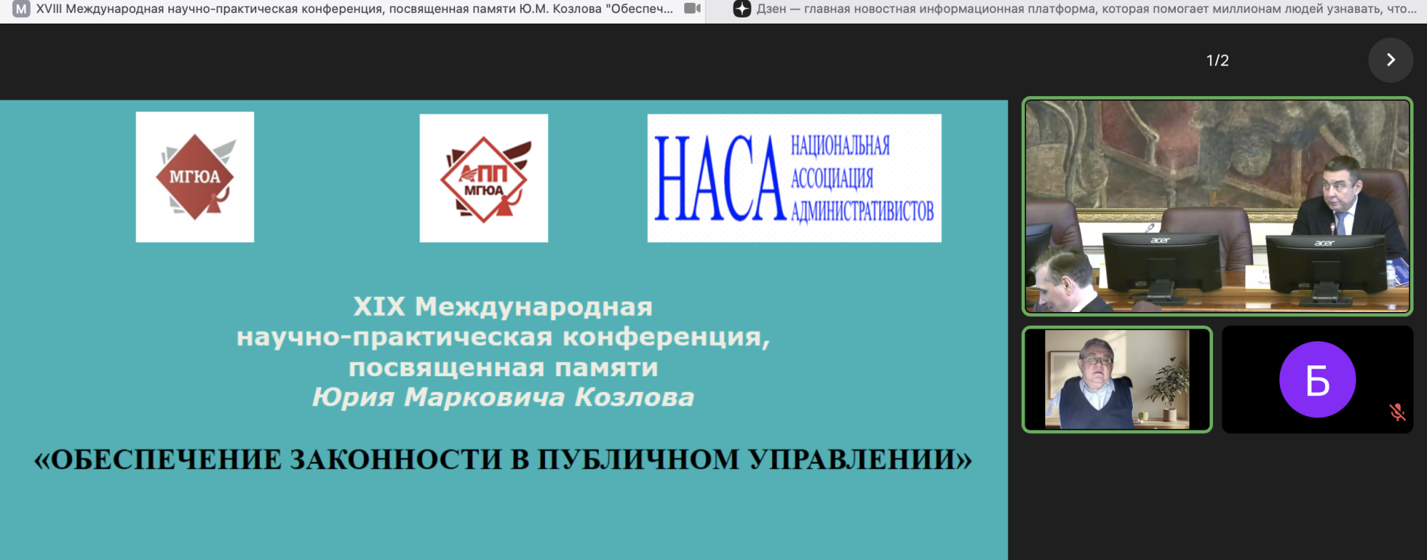 19 февраля 2026 года главный научный сотрудник ЦИПБ РАН доктор юридических наук, профессор Воронов Алексей Михайлович принял участие в работе ХVIII Международной научно-практической конференции, посвященной памяти Юрия Марковича Козлова, на тему: «Обеспечение законности в публичном управлении», проводимой Московским государственным юридическим университетом имени О.Е. Кутафина (МГЮА).