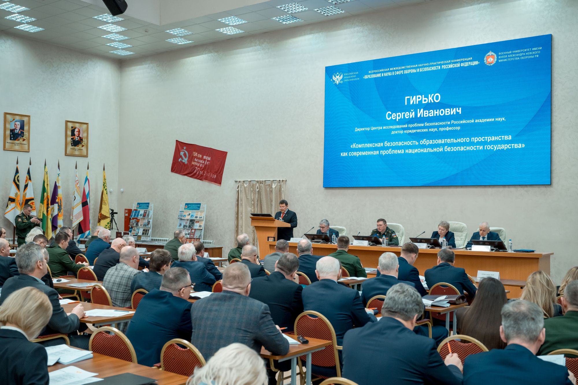 16 апреля 2026 года исполняющий обязанности директора Центра исследования проблем безопасности Российской академии наук Заслуженный деятель науки Российской Федерации, доктор юридических наук, профессор Гирько Сергей Иванович принял участие в работе Всероссийской научно-практической конференции «Образование и наука в сфере обороны и безопасности Российской Федерации» и заседании Научного совета по развитию образования в сфере оборонных отраслей при президиуме Российской академии образования, состоявшихся в Военном университете (г. Москва).